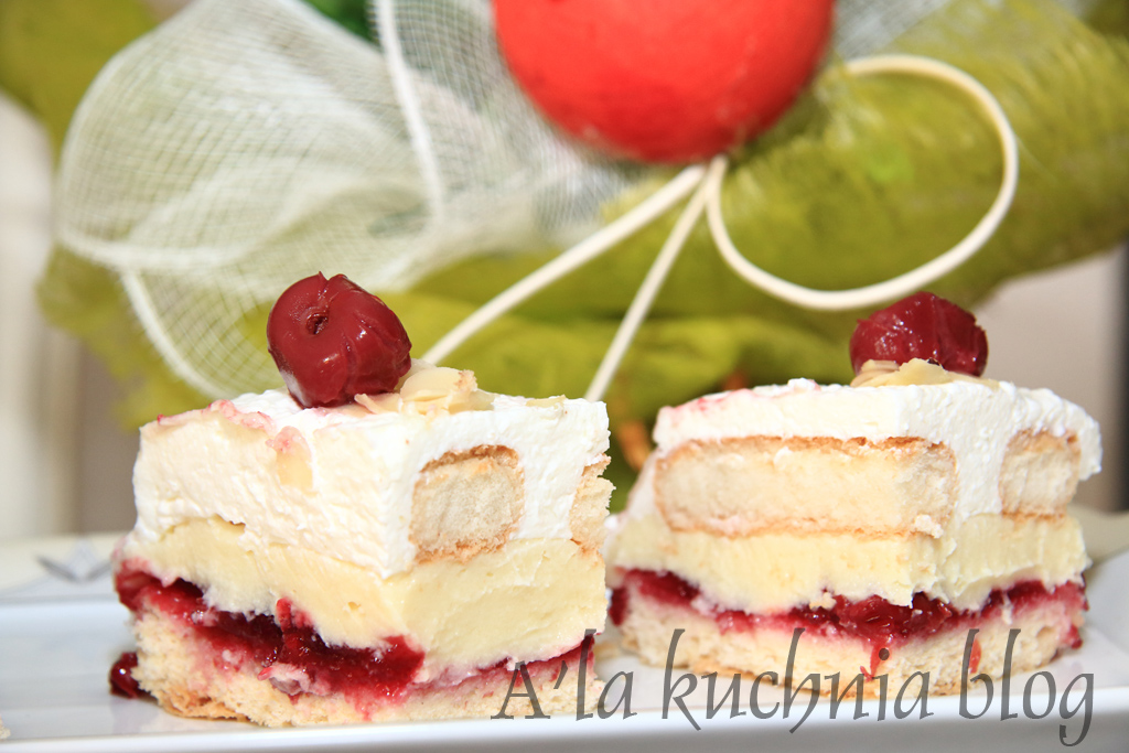 Choć za oknem pada śnieg, przed nami piękne, wiosenne Święta – Wielkanoc. Na stole pojawią się wspaniałości, baby drożdżowe, serniki i mazurki. Mam propozycję na troszkę inne ciasto świąteczne, tzw. ciasto „Bajka” z delikatną masą karpatkową, wiśniami i bitą śmietaną. Lekkie, przepyszne i bardzo świąteczne (nie tylko na Wielkanoc). Wesołych Świąt!