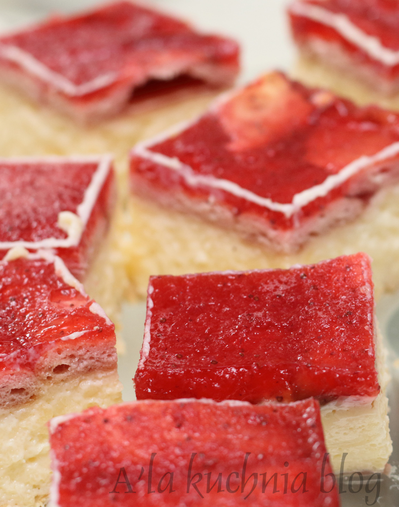 Czasami nie mamy weny lub czasu na skomplikowane ciasta lub desery, a tu goście zapowiedzieli się na kawę. Jeśli lubicie napoleonki lub serniki na zimno, to TO ciasto jest fenomenalne, a przy tym bardzo proste w wykonaniu. Nie trzeba nawet włączać piekarnika. Spróbujcie sami ciasta budyniowego bez pieczenia z galaretką z musem truskawkowym. (Aneto przepraszam, że tak długo czekałaś na przepis :D).