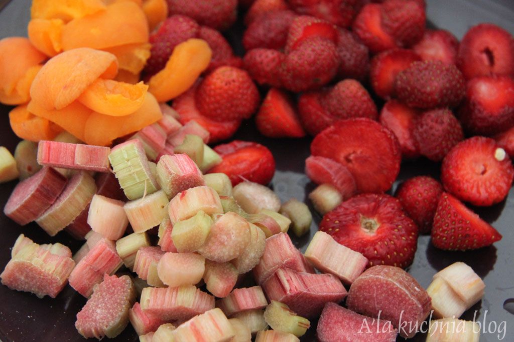 Niestety jak każda pora roku, przemija też pora moich ulubionych truskawek i rabarbaru. Na pożegnanie ciasteczka drożdżowe z truskawkami, rabarbarem i morelami.