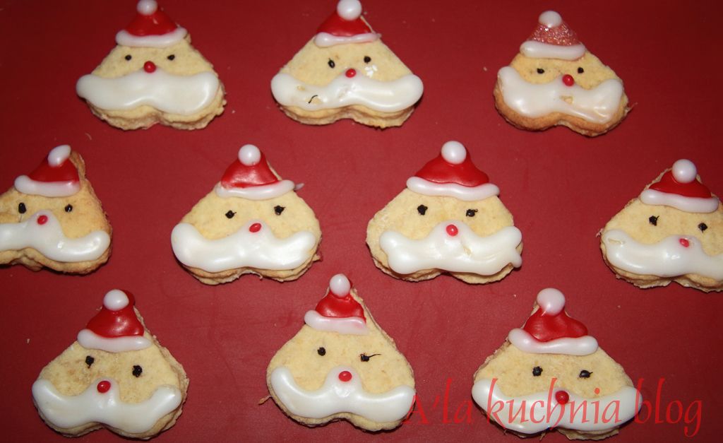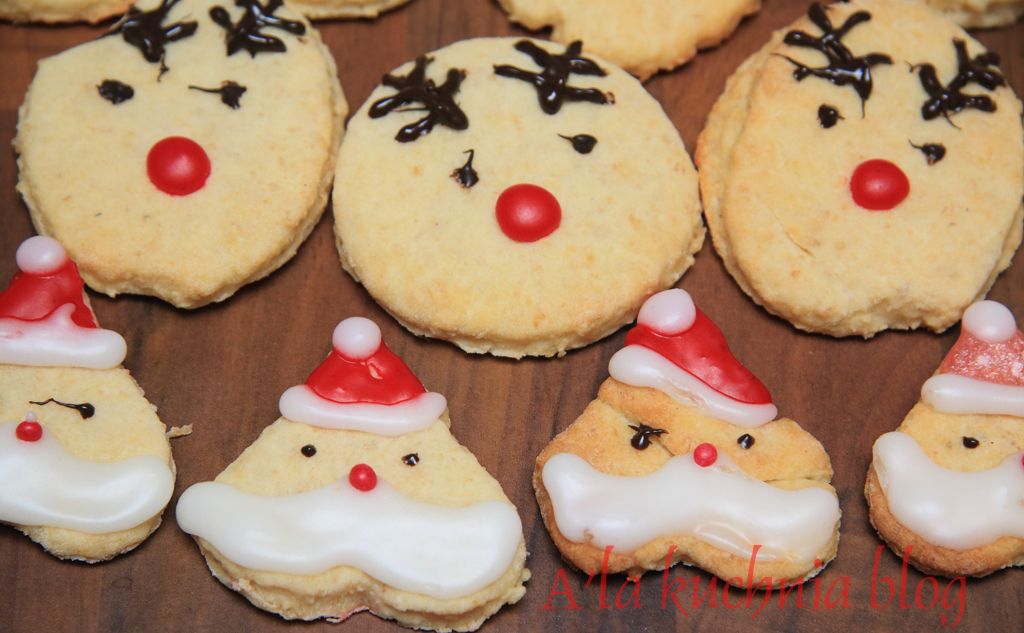 A teraz przepis na świąteczne, ciasteczkowe Mikołajki i reniferki.