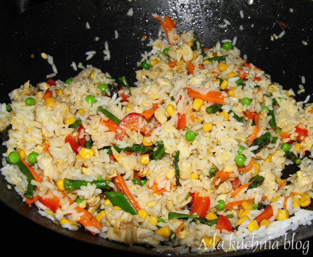 Chińska kuchnia jest jedną z najbardziej dietetycznych kuchni świata. Do kurczaka po chińsku często serwowany jest ryż lub makaron z warzywami. Ponieważ w dniu dzisiejszym postanowiłam zrobić danie bezmięsne, do ryżu obok warzyw dodałam jajko. Sprawdziło się doskonale. Powstało bardzo sycące, kolorowe i smakowite danie, które przyrządza się w oka mgnieniu.