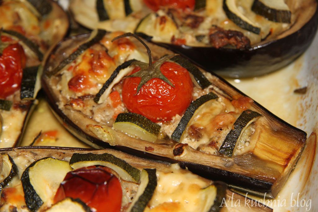 Korzystając z okresu jesiennego uskuteczniamy wszelkiego rodzaju zapiekane warzywa. Były już papryki, dziś nadszedł czas na bakłażany i cukinie. Proste, efektowne i bardzo smaczne danie. Polecam.