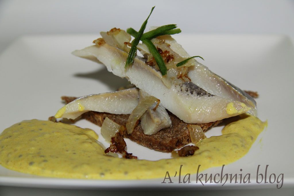 W tym roku ogarnął mnie szał śledziowy. Ta, często niedoceniana, ryba jest genialna w smaku, czy to w postaci smażonej i zalanej octem, czy w sosie piernikowym, czy z marynowanymi grzybkami, czy z ananasem... nie ma znaczenia byleby to były śledzie :D. W sieci natrafiłam na przepis na śledzie w sosie musztardowym i wiedziałam od razu, że zaraz przystąpię do wykonania.