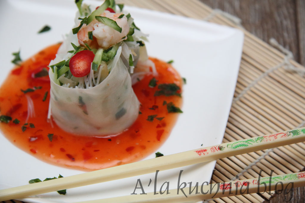 Przystawka + danie główne. Dziś rolki/roladki z papieru ryżowego z sałatką krewetkową. Za kilka dni zapraszam po przepis na kurczaka w zielonym curry coś a’la Tom Kha Kai. Smacznego!