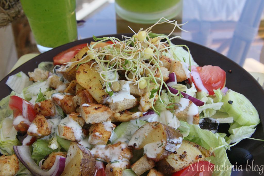 Letnia sałatka obiadowa – ziemniaki, grzanki, kiełki, drób, warzywa... i co tylko sobie jeszcze wymyślisz...