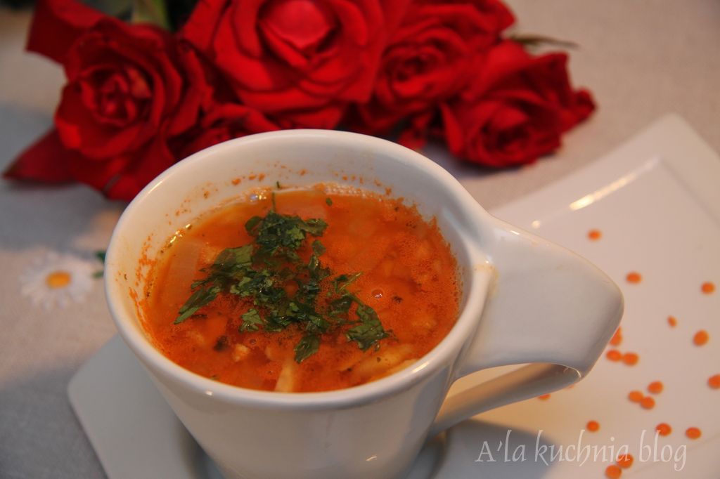 Mrozów ciąg dalszy - brrrr nadal bardzo zimno. Może coś rozgrzewającego i treściwego na obiad? Czerwona soczewica - zdrowa i bardzo sycąca + imbir, który rozgrzewa? Zupa z soczewicy z imbirem to jest to!