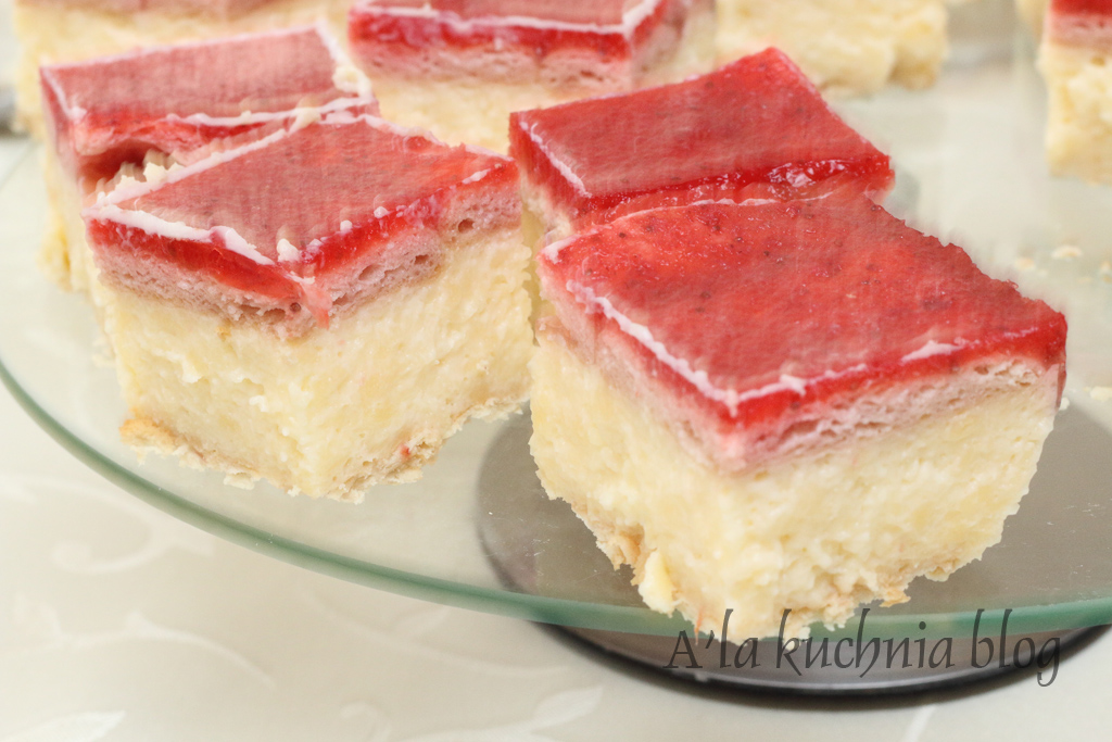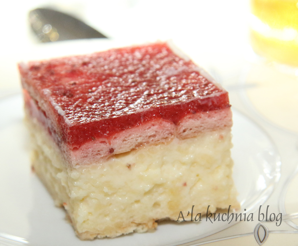 ciasto budyniowe MUS Truskawkowy galaretka  masa herbatniki bez pieczenia przepis łatwe szybkie