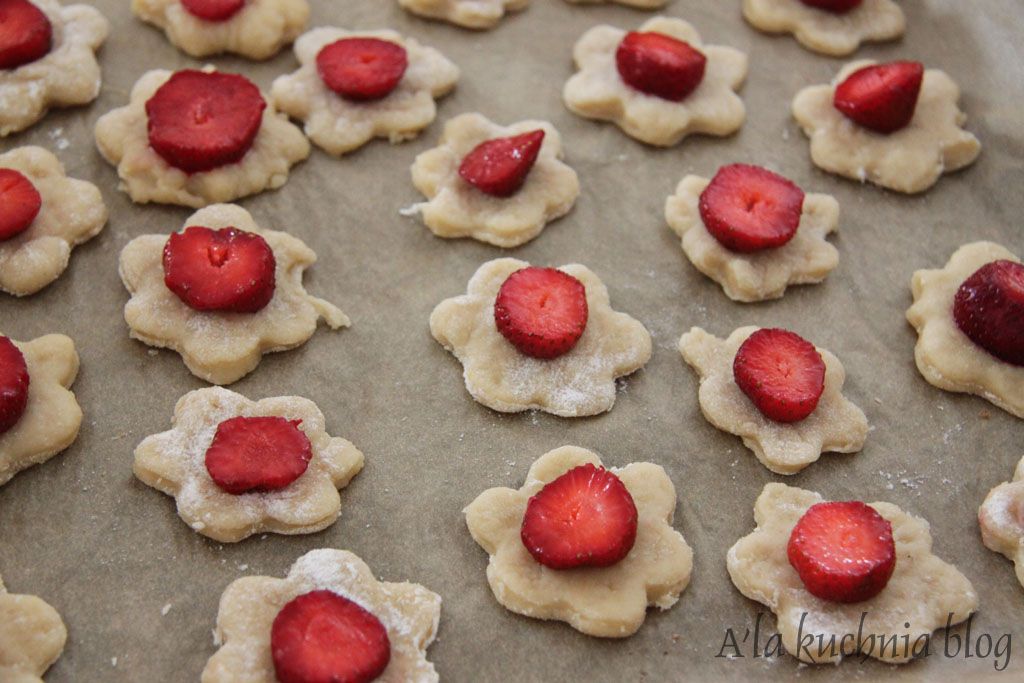 Ciasteczka układamy na blasze wyłożonej papierem do pieczenia i pozostawiamy jeszcze na ok. 15 minut po czym pieczemy 15 minut w 200 stopniach.