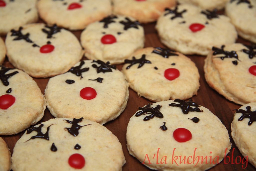A teraz przepis na świąteczne, ciasteczkowe Mikołajki i reniferki.