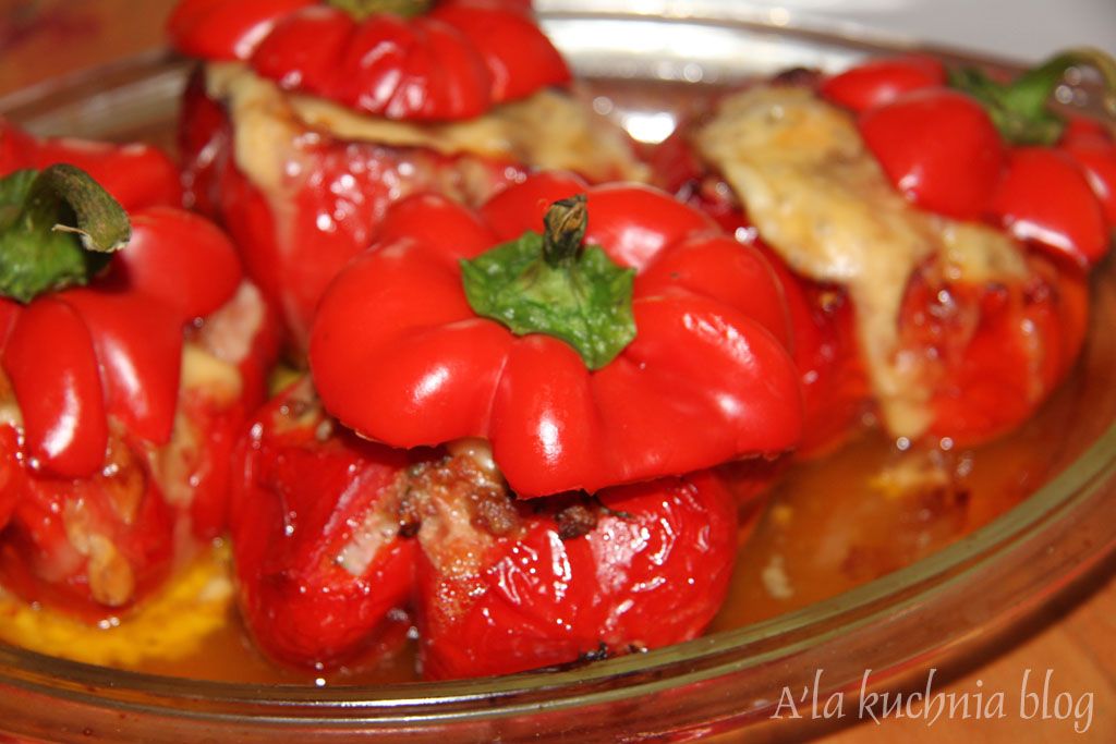 Przełamując serię przepisów z dynią w tle, proponuję kolejne jesienne warzywo bardzo bogate w witaminę C, dobre na skórę i poprawiające odporność – paprykę. Dziś w roli głównej pieczona, faszerowana mięsem mielonym papryka!
