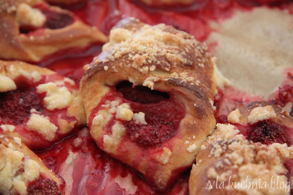 Kończąc sezon truskawkowy postanowiłam zrobić drożdżówki z tym ulubionym owocem. Drożdżóweczki są delikatne i bardzo aromatyczne. W sam raz na podwieczorek lub drugie śniadanie.