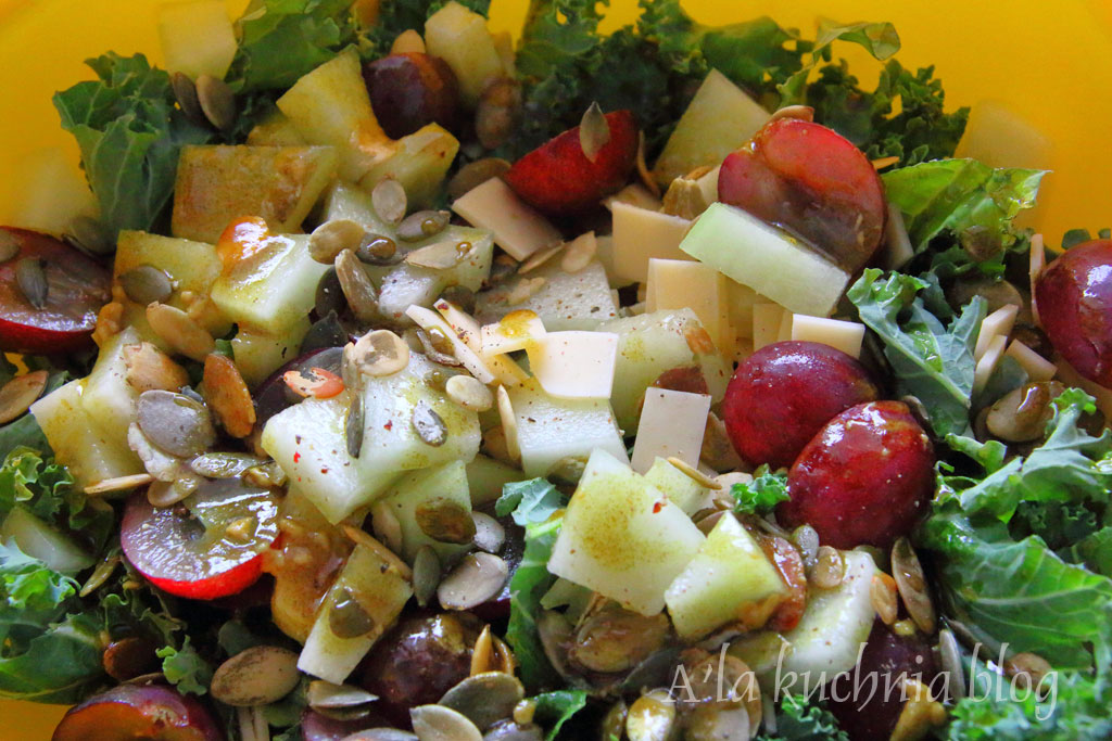 Ostatnio kupiÅ‚am jarmuż. Podobno to bardzo zdrowe warzywo, ale podchodziÅ‚am do niego jak do jeża. PomyÅ›laÅ‚am sobie, że można by zrobić jakÄ…Å› nowÄ… saÅ‚atkÄ™ do grilla i przy okazji wykorzystać skÅ‚adniki z lodówki. Wybór padÅ‚ na saÅ‚atkÄ™, która doskonale nadaje siÄ™ również na imprezÄ™.